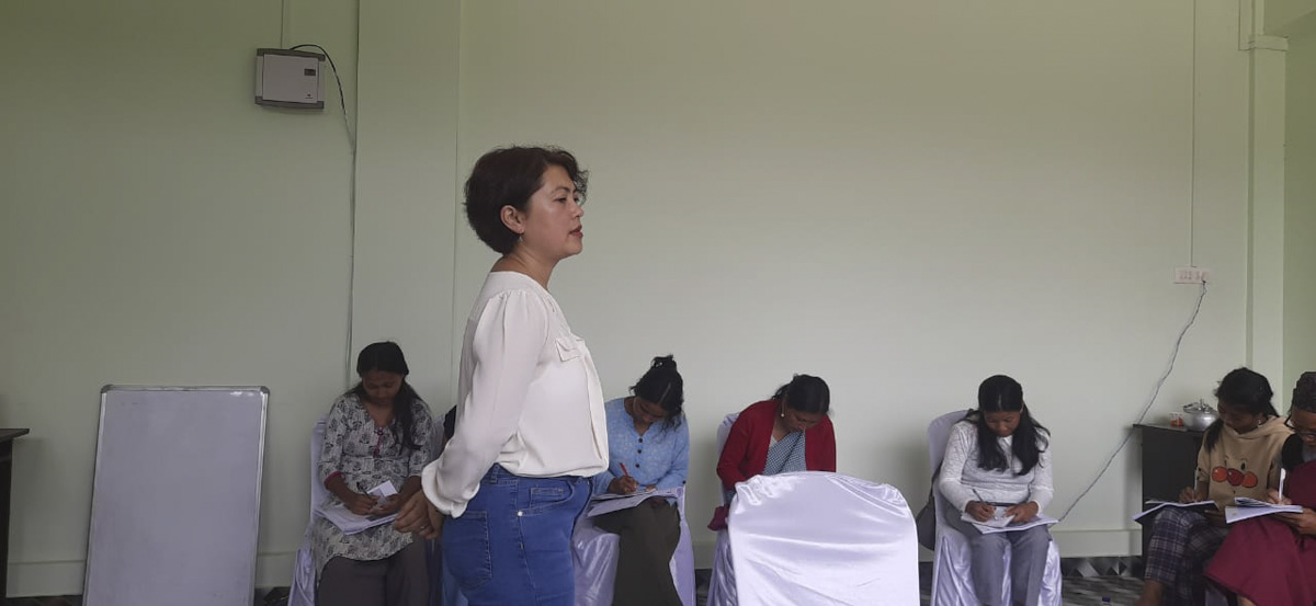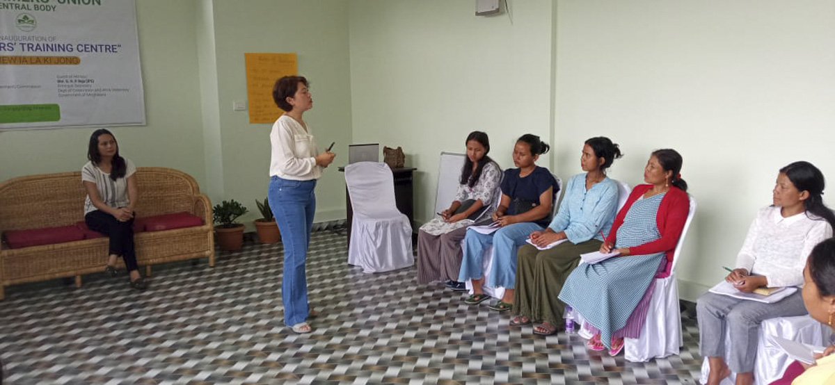 The first training was conducted at the Hills’ Farmer Union training centre in Shillong on the 5th August 2022. There were ten young ladies who participated in this training. The young women were in fact young women leaders from various districts selected by an NGO called Sewa Bharti for Personality Development training. I was privileged to be able to take part and contribute in this training. I was glad that all the above mentioned objectives were met. The participants were already master trainers in their own fields; like agriculturists, horticulturists, essential oils producers, florists, weavers etc. So it was very effective and smooth to sensitise them and build their capacity to train other young people back in their villages. They were also sensitised about the topic on Social Entrepreneurship and how working together as a team or a group can really go a long way in uplifting their socio economic conditions in their villages.